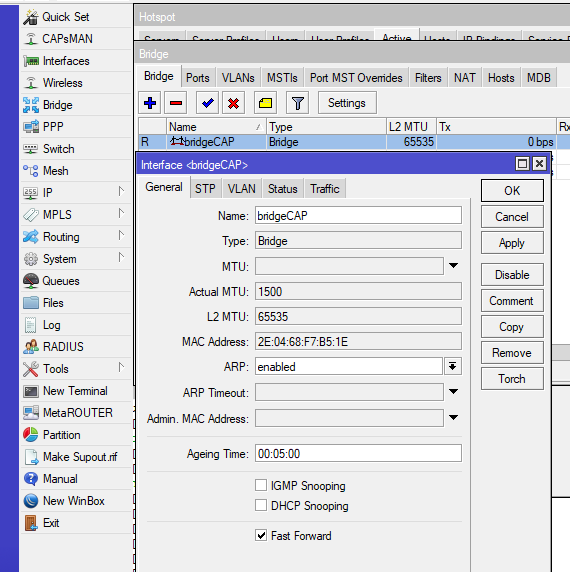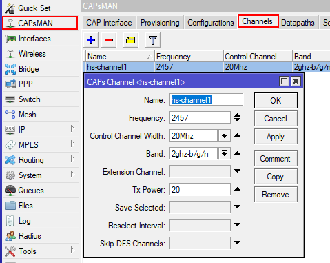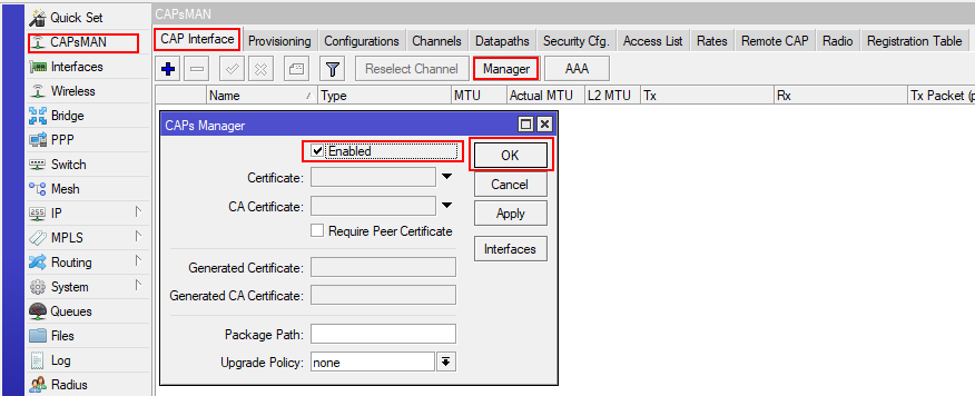 В меню выбираем CAPsMan-CAP Interface-Manager