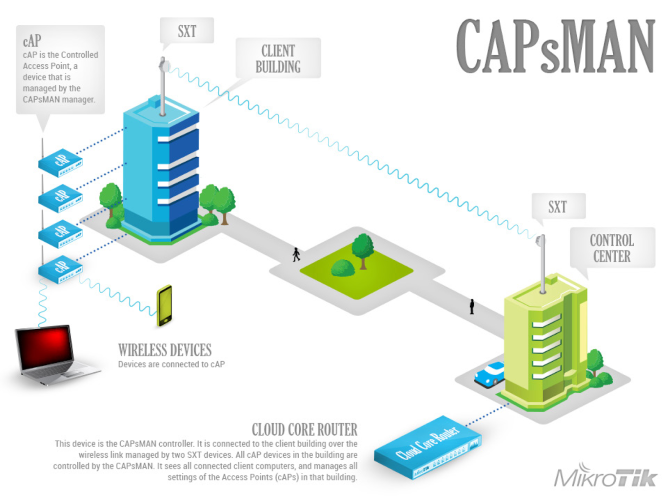Один контроллер CAPsMAN WiFi на несколько зданий